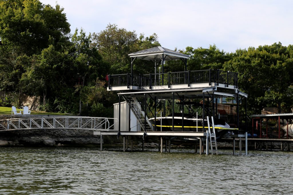 We specialize in custom boat dock construction and dock improvements designed specifically for the conditions and regulations of Lake Texoma. From private residential docks to large multi-slip commercial marinas, every dock we build is engineered, assembled, and finished to match the needs of the property, the water conditions, and the end user. Each dock is fully customizable, including slip sizes, layouts, roofing systems, colors, materials, and finish-out options — ensuring a functional, durable, and visually cohesive result.